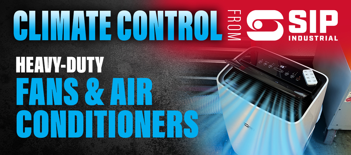 SIP offers a comprehensive range of fans, air conditioners, dehumidifiers and ventilators designed for effective air circulation, ventilation and climate control across a variety of environments. Our full range includes free-standing workshop fans and swivel drum fans, alongside energy-efficient air conditioners, reliable dehumidifiers and high-performance ventilators, all purpose-built to remove stale air, odours and fumes while keeping spaces comfortable and fresh. Ideal for factories, garages, workshops, agricultural settings and more, these solutions provide dependable airflow, cooling and climate management wherever it’s needed.