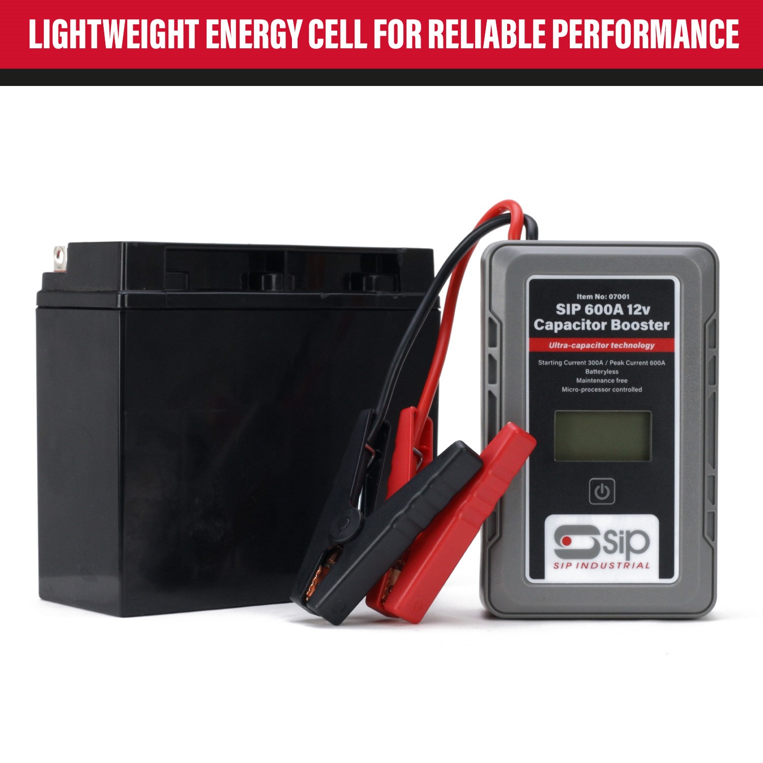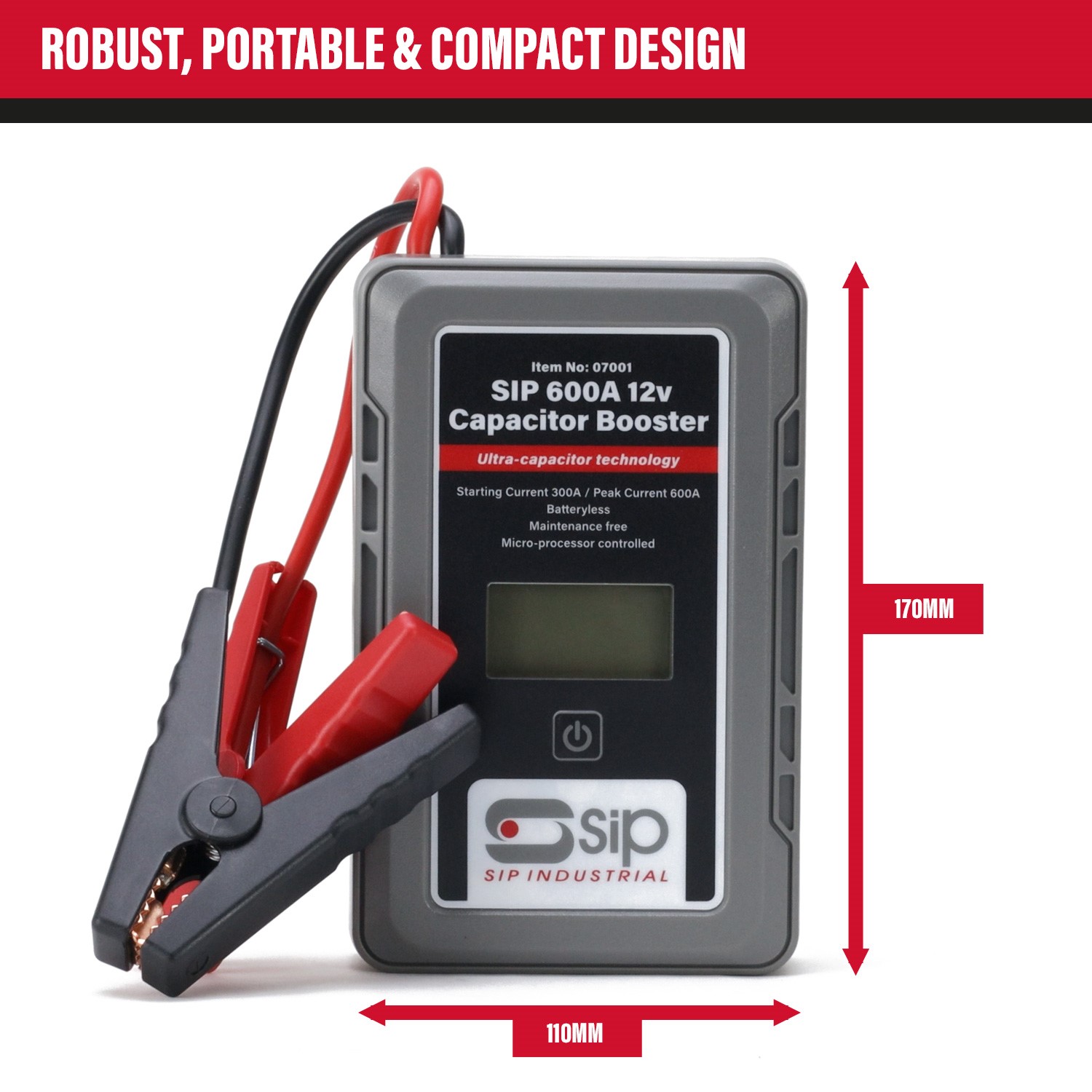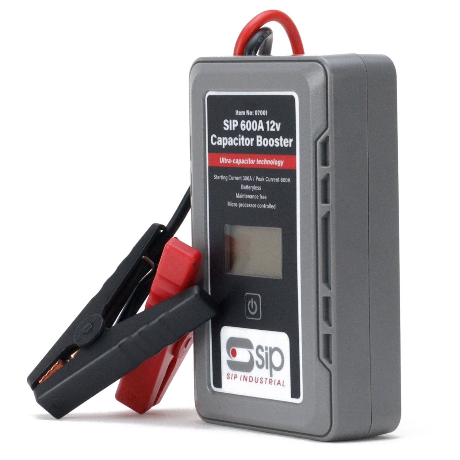 The SIP 600A 12v Capacitor Booster is an innovative handheld portable device designed to discharge a high current boost needed to start a car or small van battery.