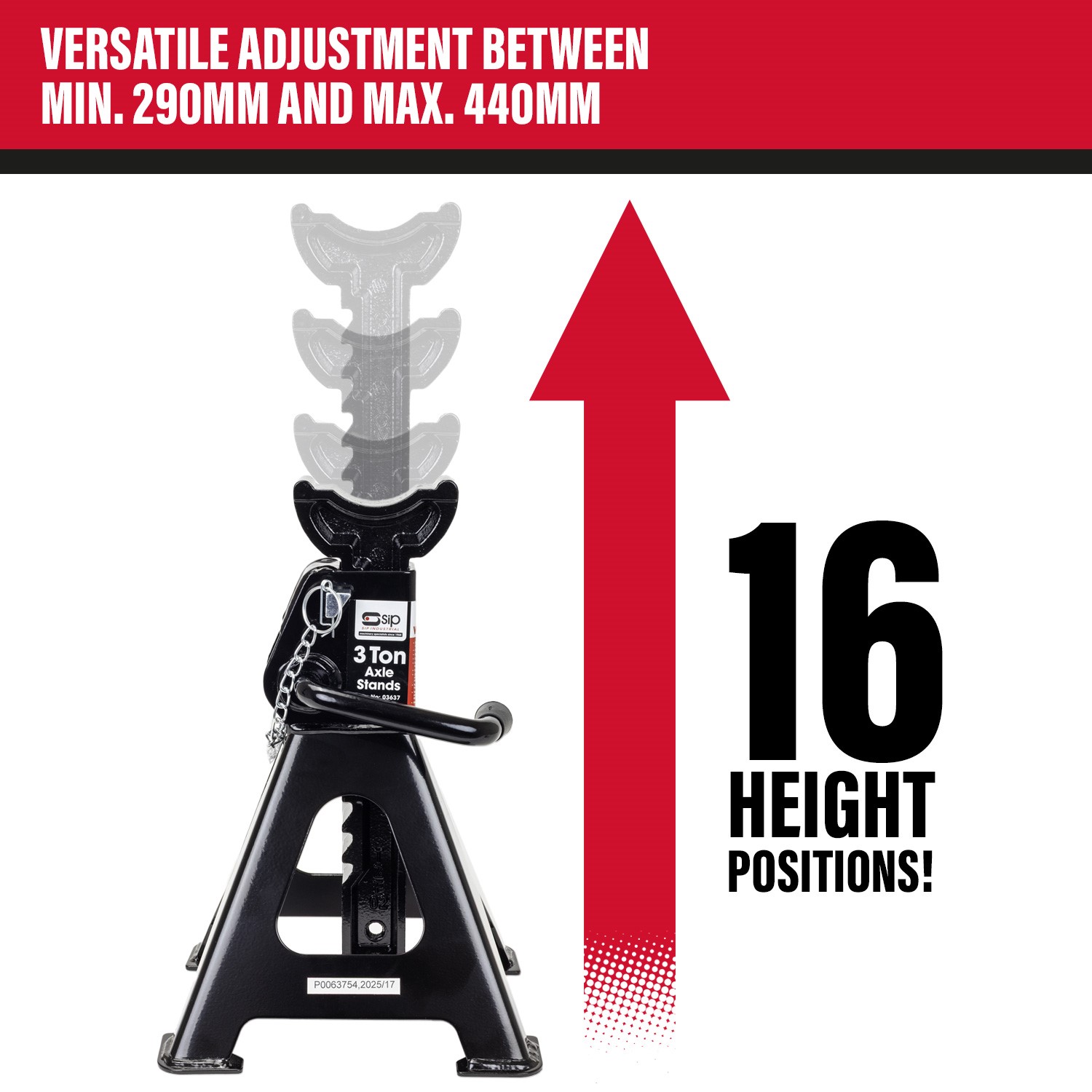 The SIP 3 Ton Ratchet Jack Stands are heavy-duty jack stands ideal for cars, SUVs and light vans. Suitable for undercarriage inspections, repairs and general maintenance in garages and automotive workshops, mobile breakdown and service vans.