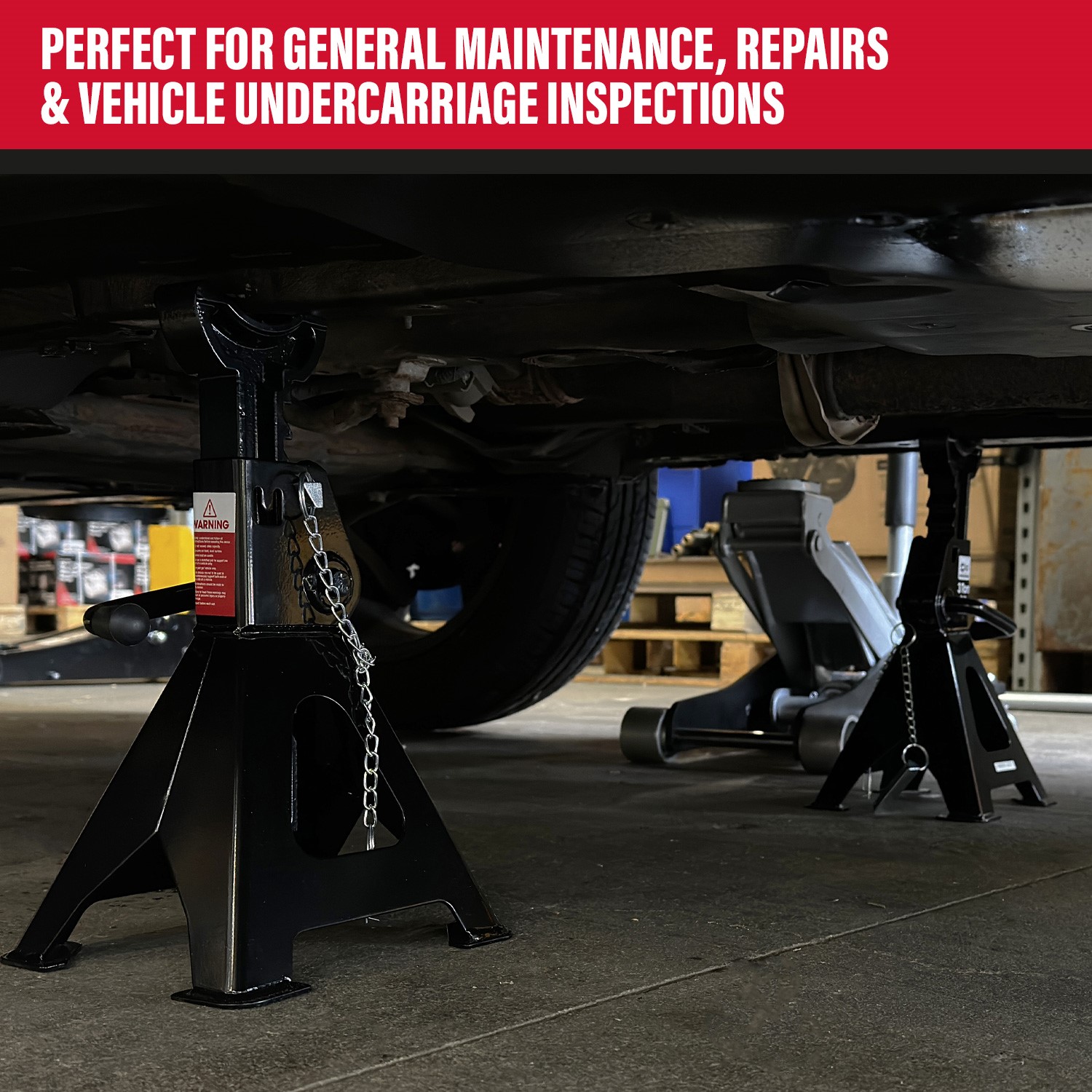 HEAVY-DUTY 3 TON JACK STANDS WITH HEIGHT-ADJUSTABLE RATCHET SUPPORT COLUMN FOR VERSATILITY