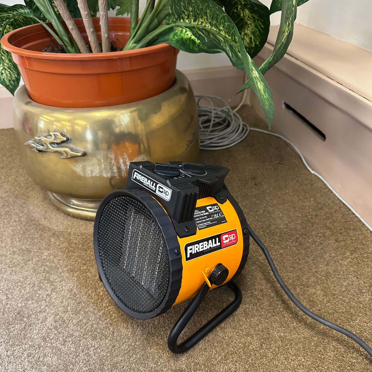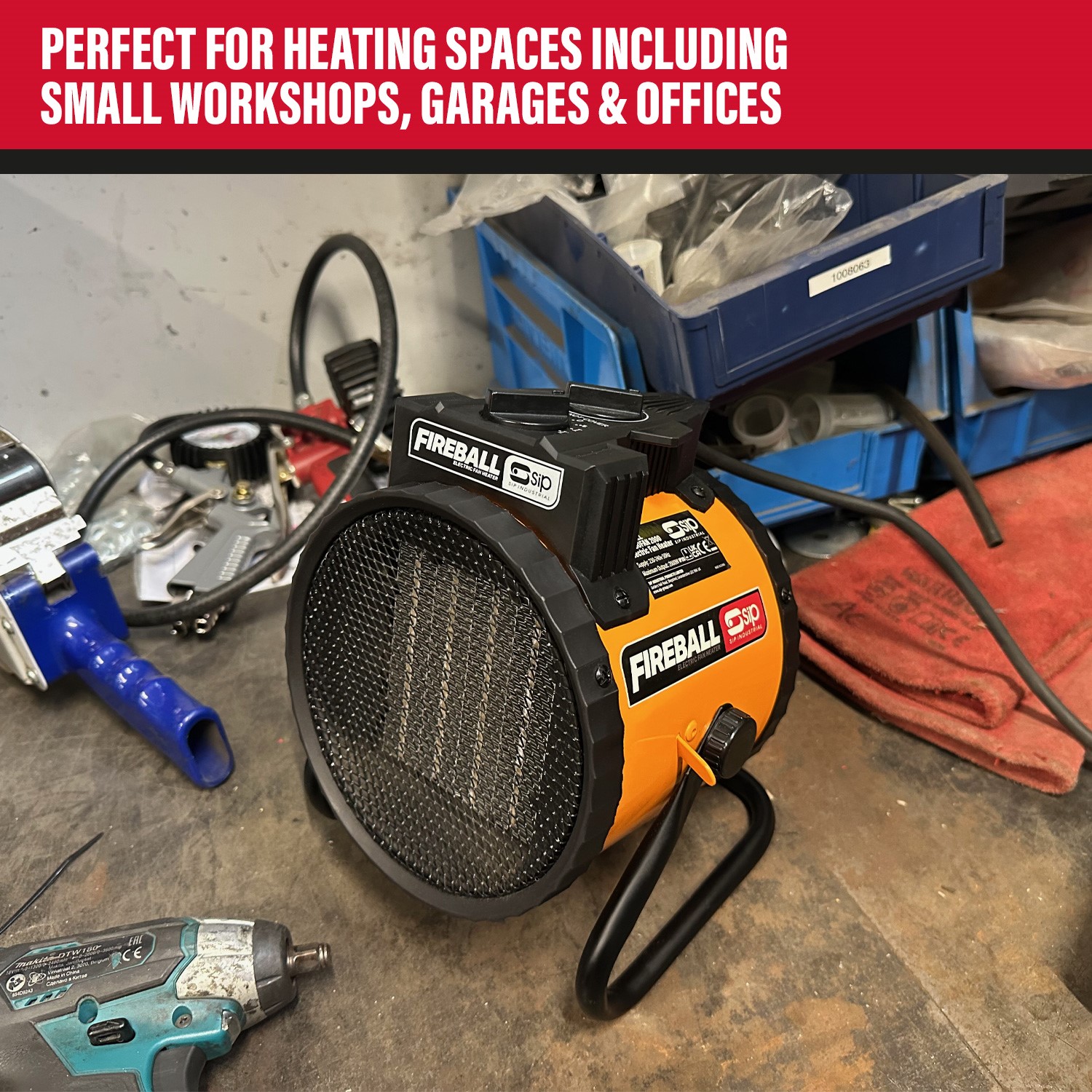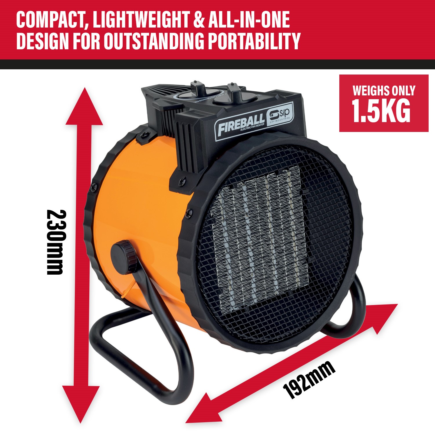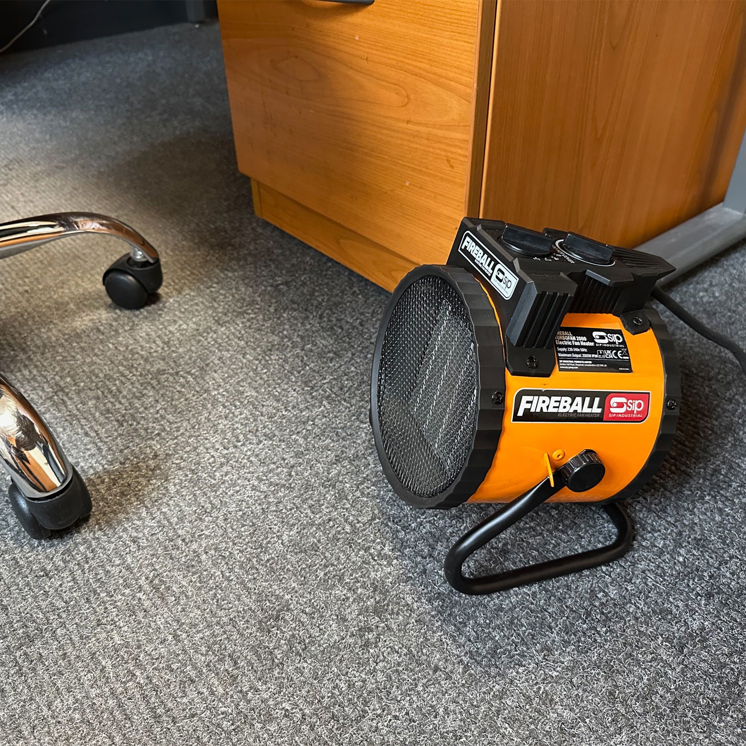 The SIP FIREBALL Turbofan 2000 Electric Fan Heater is a compact and portable heater designed to quickly and effectively heat small workshops, garages and offices.