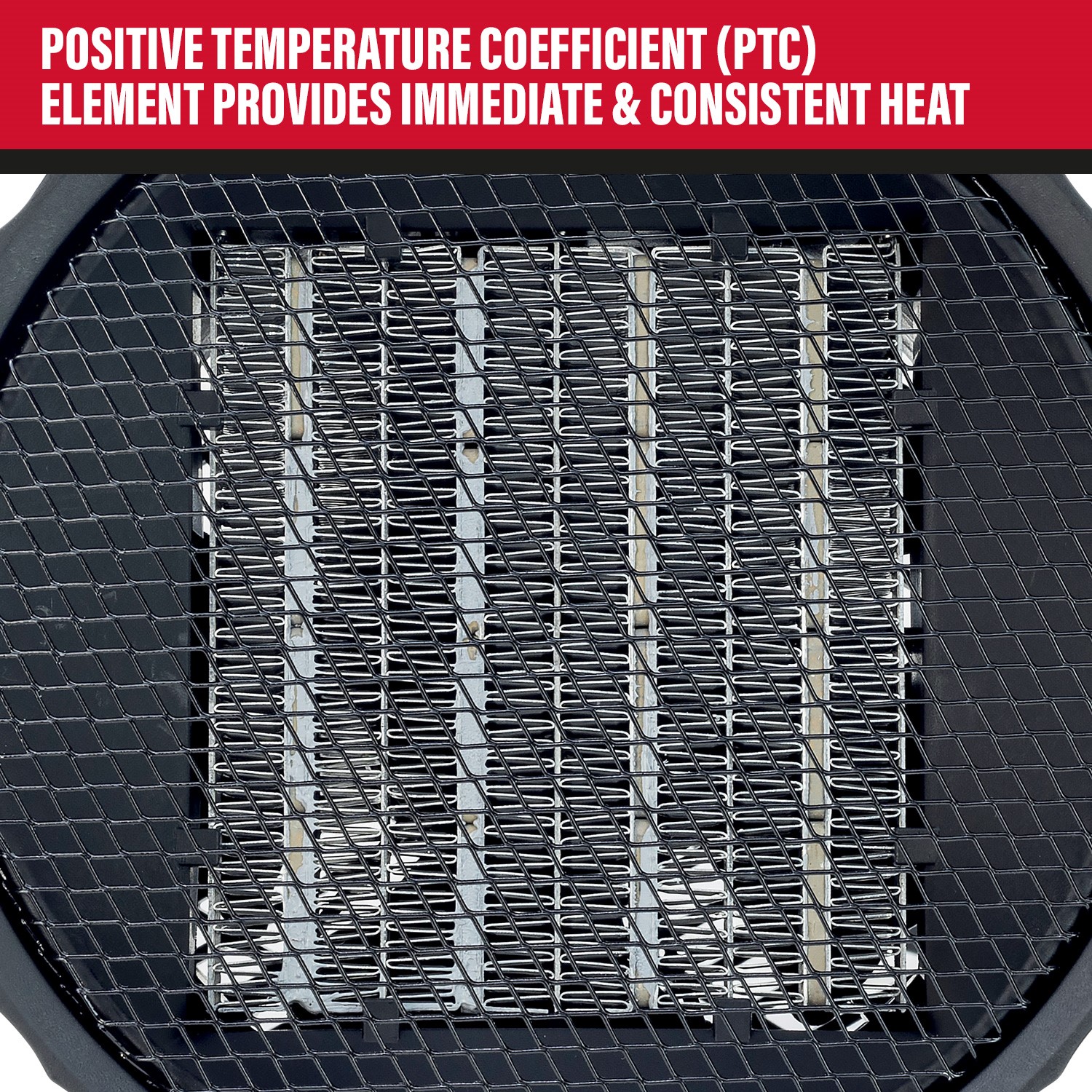 POSITIVE TEMPERATURE COEFFICIENT (PTC) ELEMENTS PROVIDES IMMEDIATE & CONSISTENT HEAT LEVELS