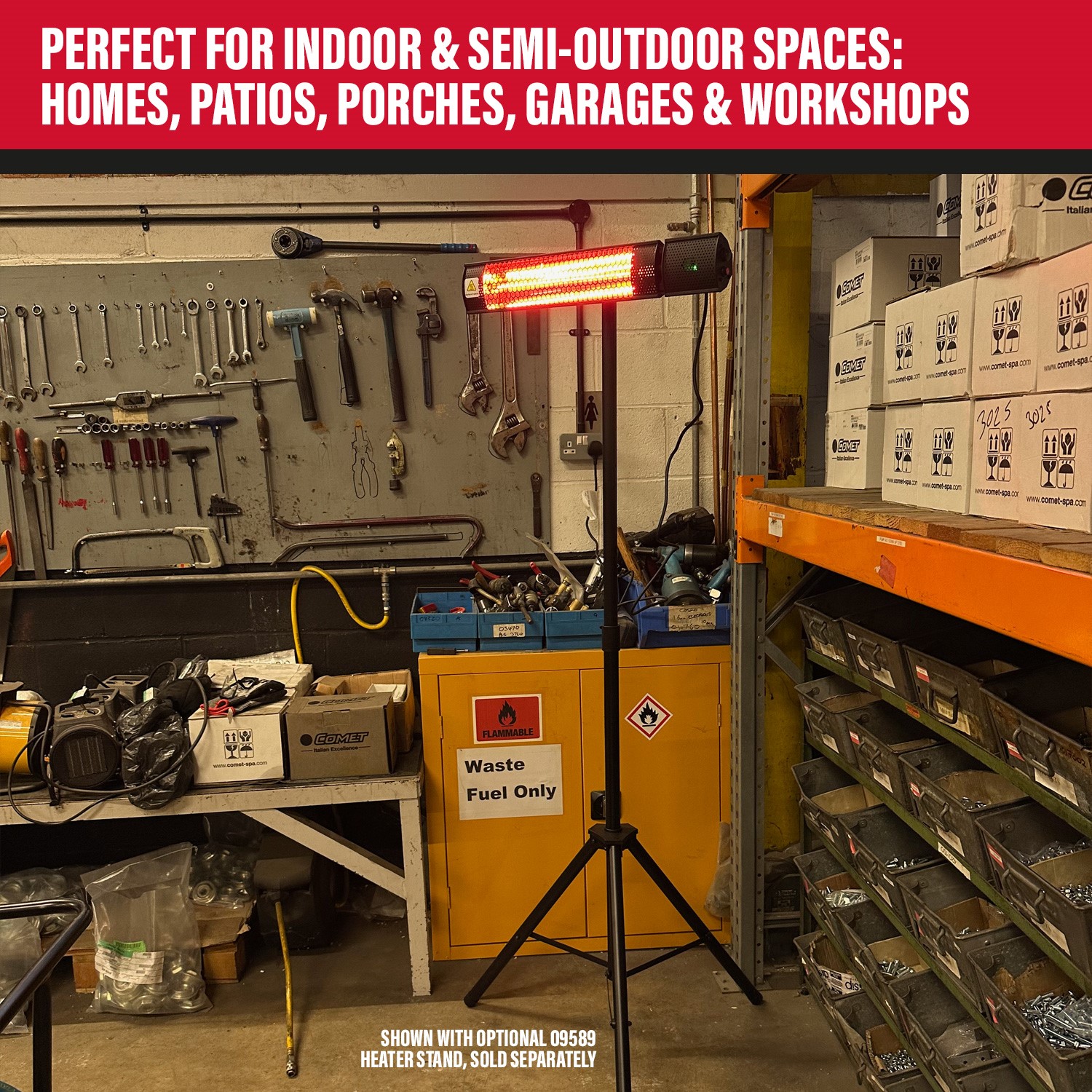 The SIP Halogen Infrared Heater with Remote Control is a compact infrared heating solution designed for use in indoor and semi-outdoor environments. This includes homes, patios, porches and sheltered outdoor areas. Suitable for garages and workshops.