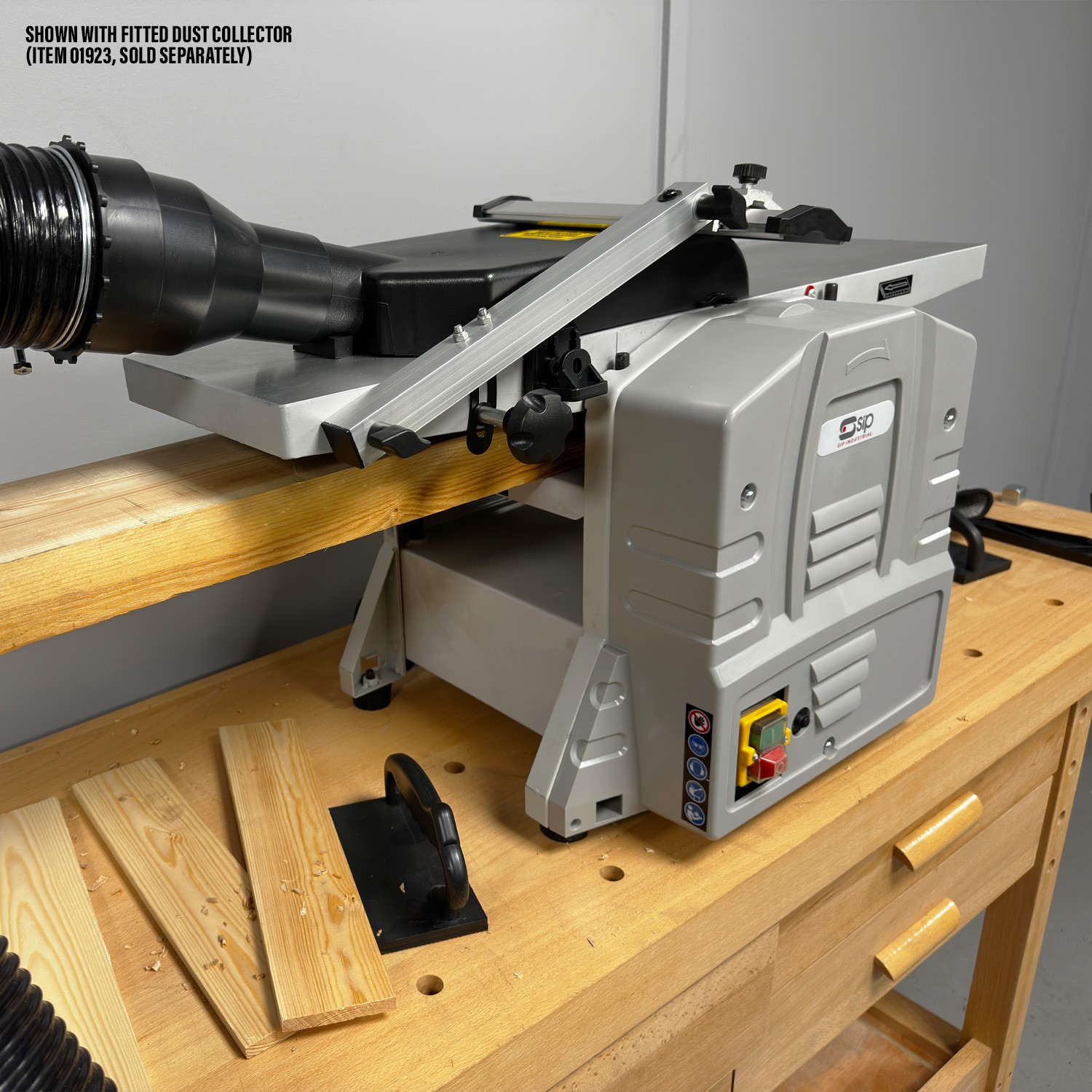 For machine longevity, this planer thicknesser must be operated with an attached dust extractor. Recommended extractors for this machine are the SIP 50ltr Dust & Chip Collector (01923) or SIP 1hp Portable Single Bag Dust Collector (01963).