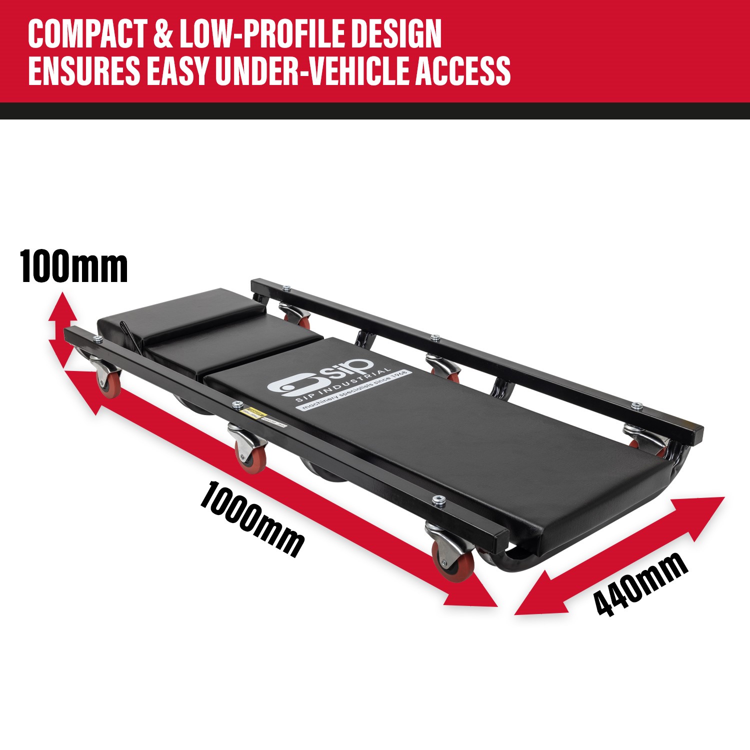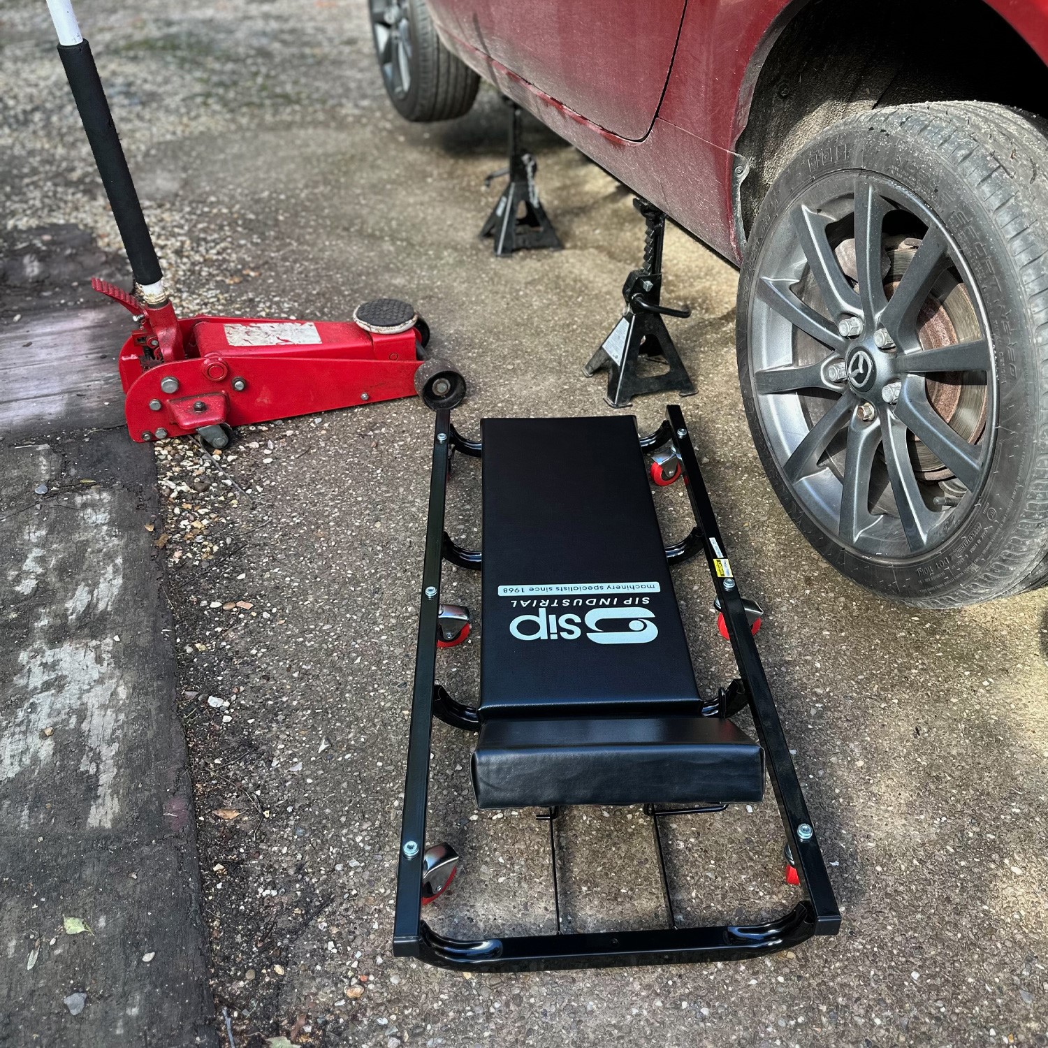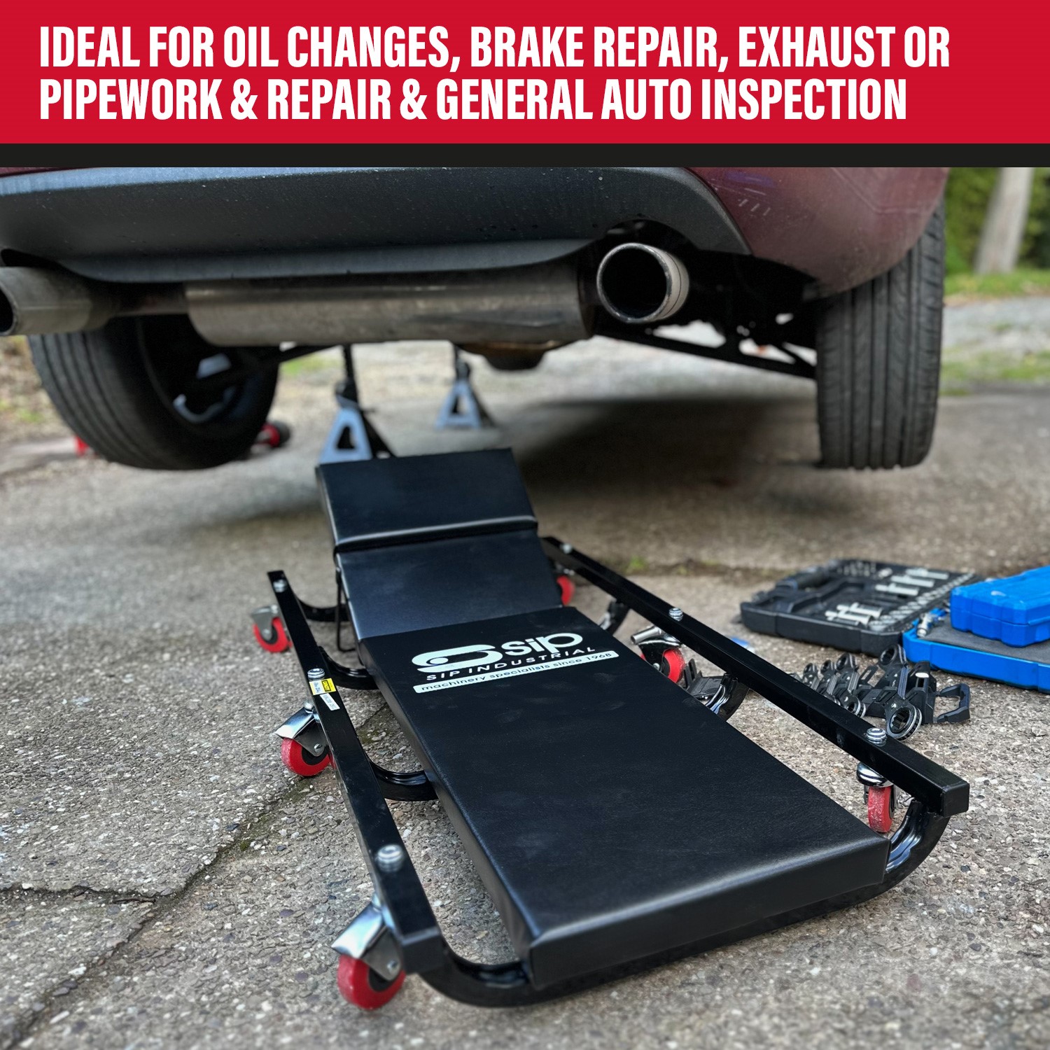 The SIP Adjustable Mechanic Car Creeper is designed to bring customisable ergonomic comfort and convenience to under-vehicle tasks in automotive garages and workshops, including oil changes, brake repairs, exhaust or pipe maintenance, and inspections.