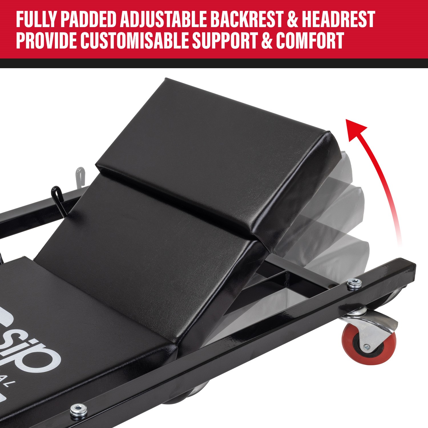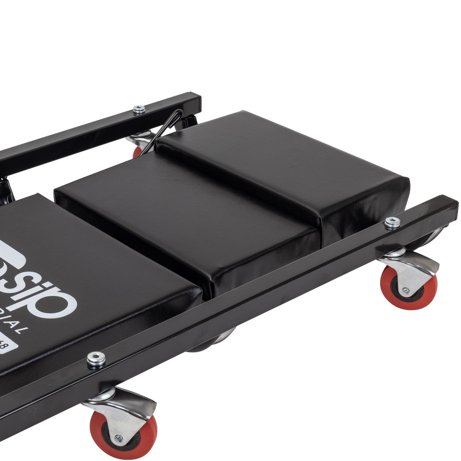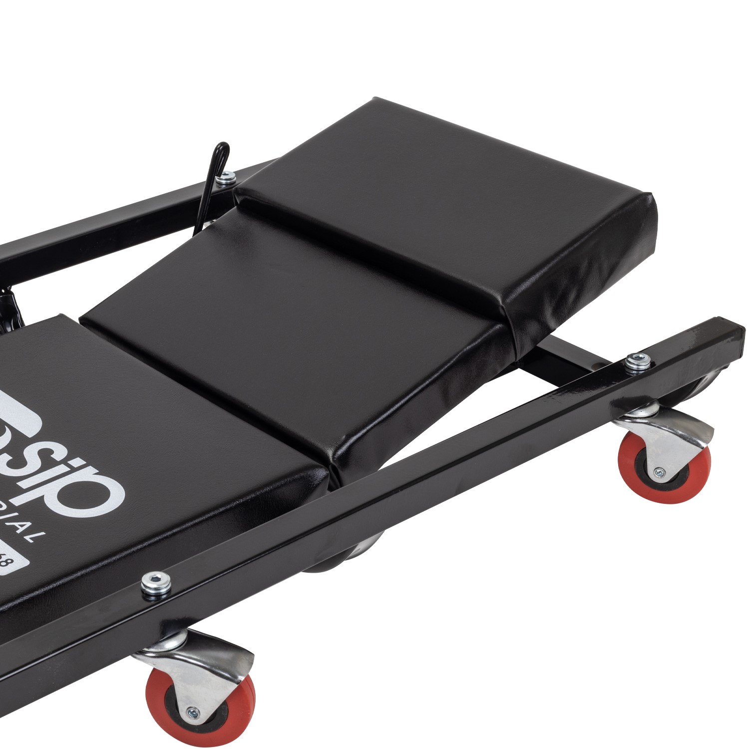 The SIP Adjustable Mechanic Car Creeper is designed to bring customisable ergonomic comfort and convenience to under-vehicle tasks in automotive garages and workshops, including oil changes, brake repairs, exhaust or pipe maintenance, and inspections.