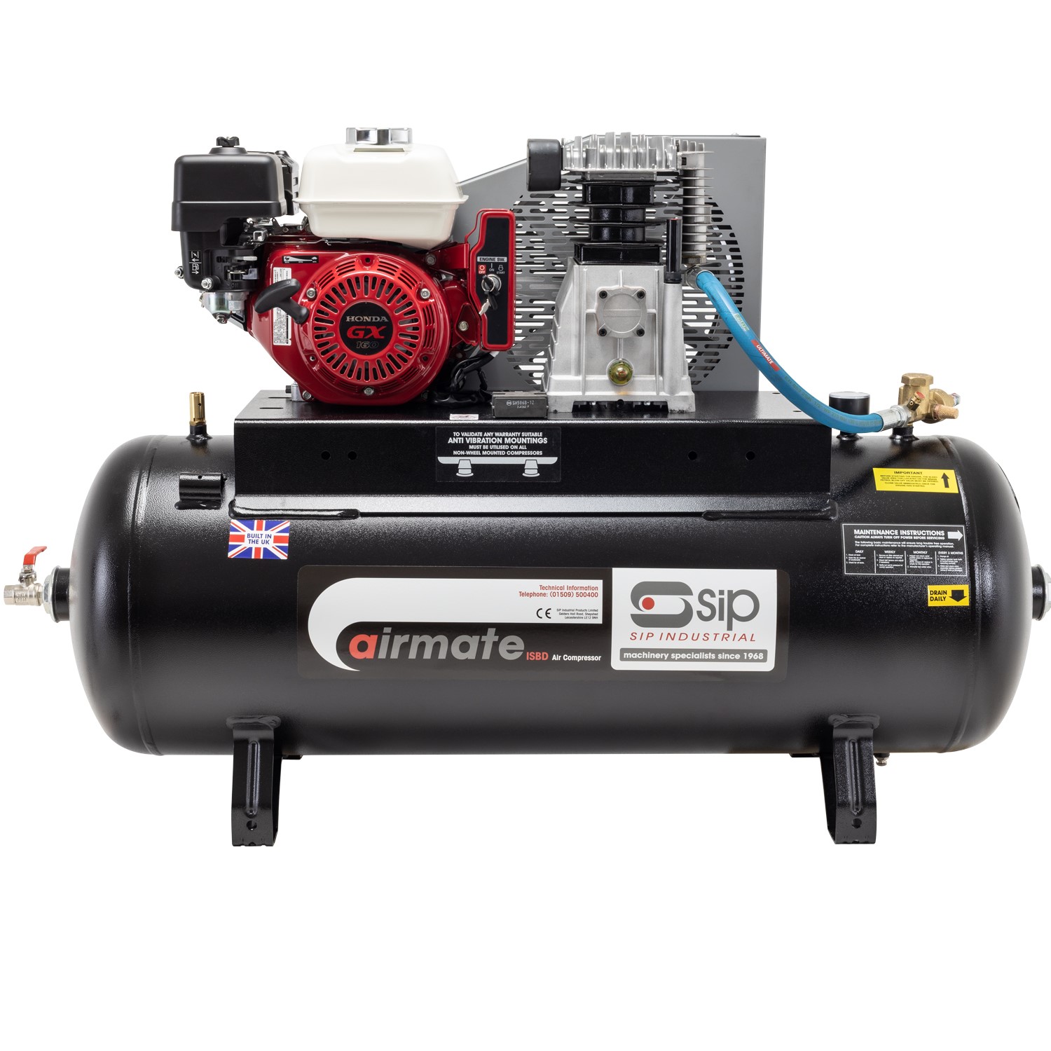 The SIP ISHP5.5/150ES 150ltr Industrial Petrol Compressor is a petrol-powered, electric-starting industrial compressor built with a heavy-duty and extremely reliable HONDA™ GX160 163cc EURO V engine and a robust static design to ensure that it can be the centre of your workspace, offering powerful performance and outstanding durability.
