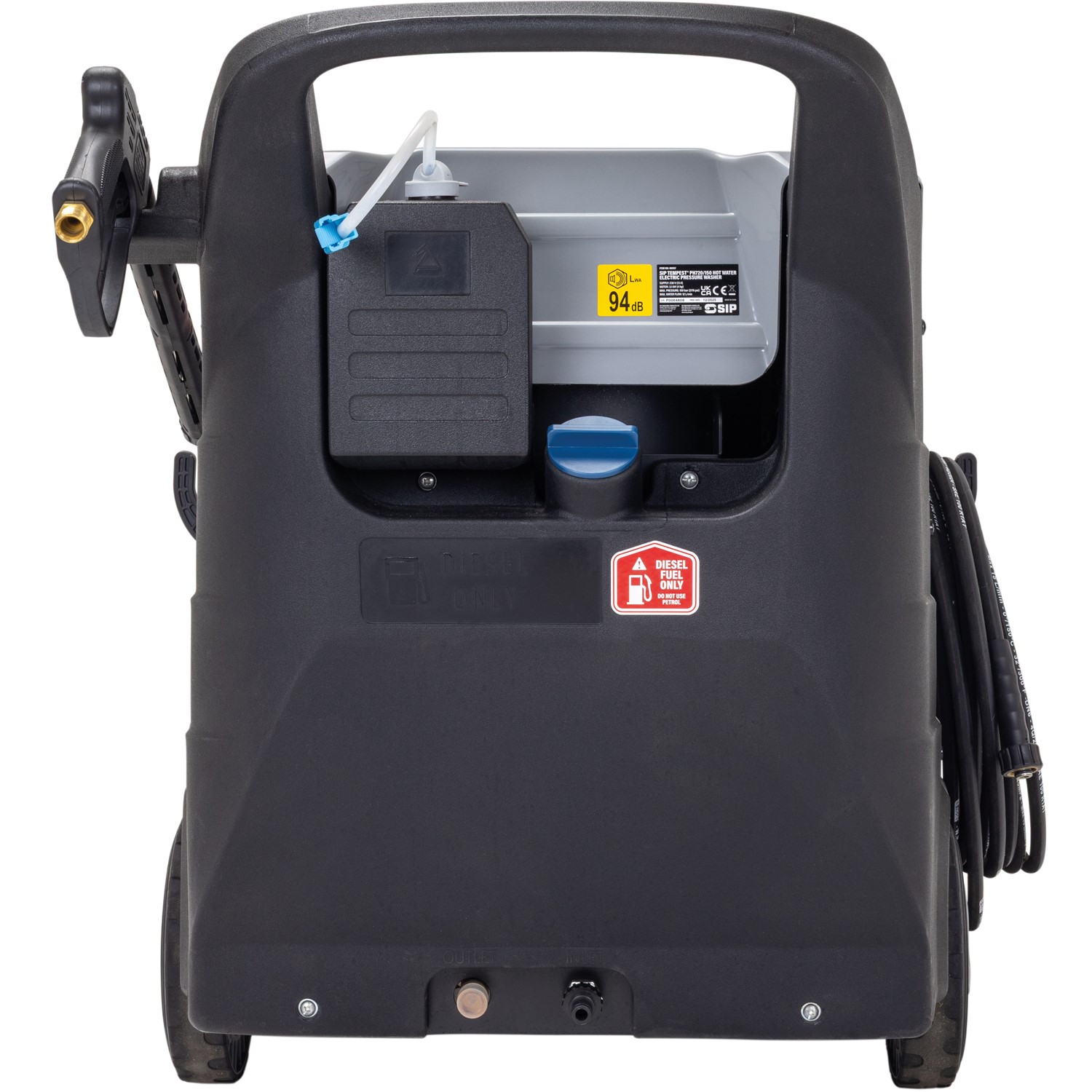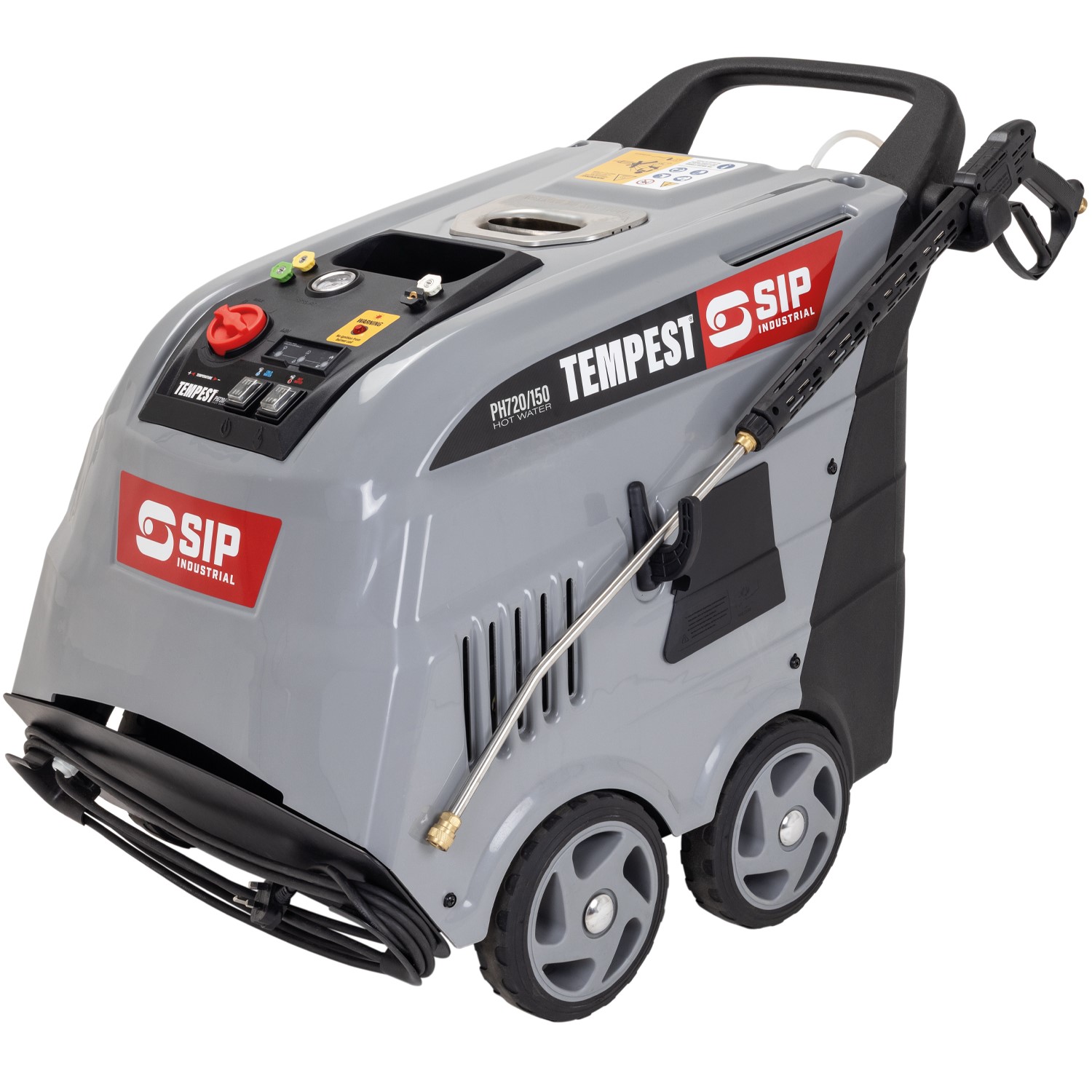 What's in the box?: 1x SIP TEMPEST® PH720/150 Hot Water Electric Pressure Washer, 10m high pressure hose, lance, inlet filter, 4x nozzles, quick coupler, fixings and antifreeze kit.