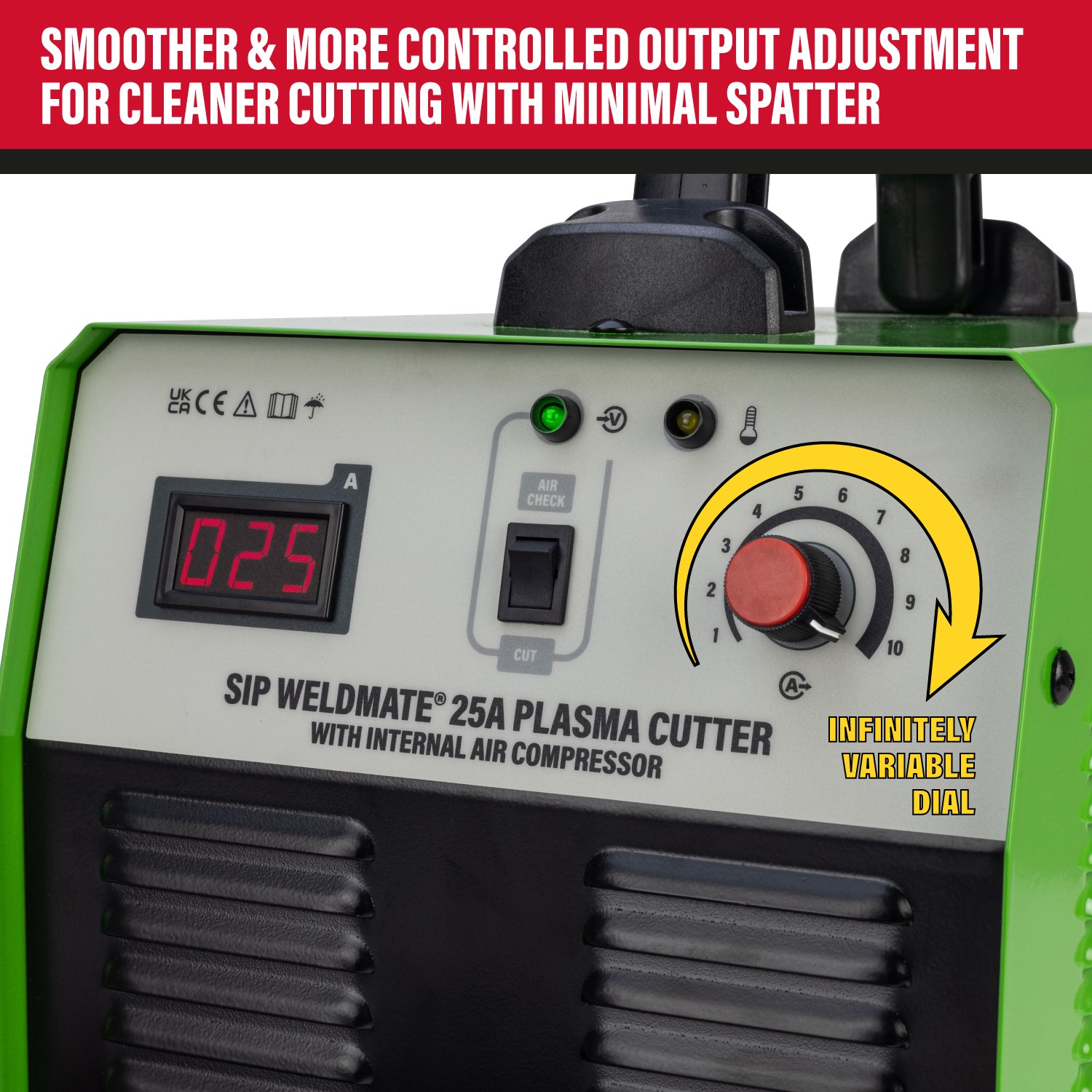 The SIP WELDMATE® 25A Inverter Plasma Cutter with Internal Compressor is a powerful and versatile inverter plasma cutter designed for use in automotive and garage environments, professional fabrication workshops and agricultural settings.